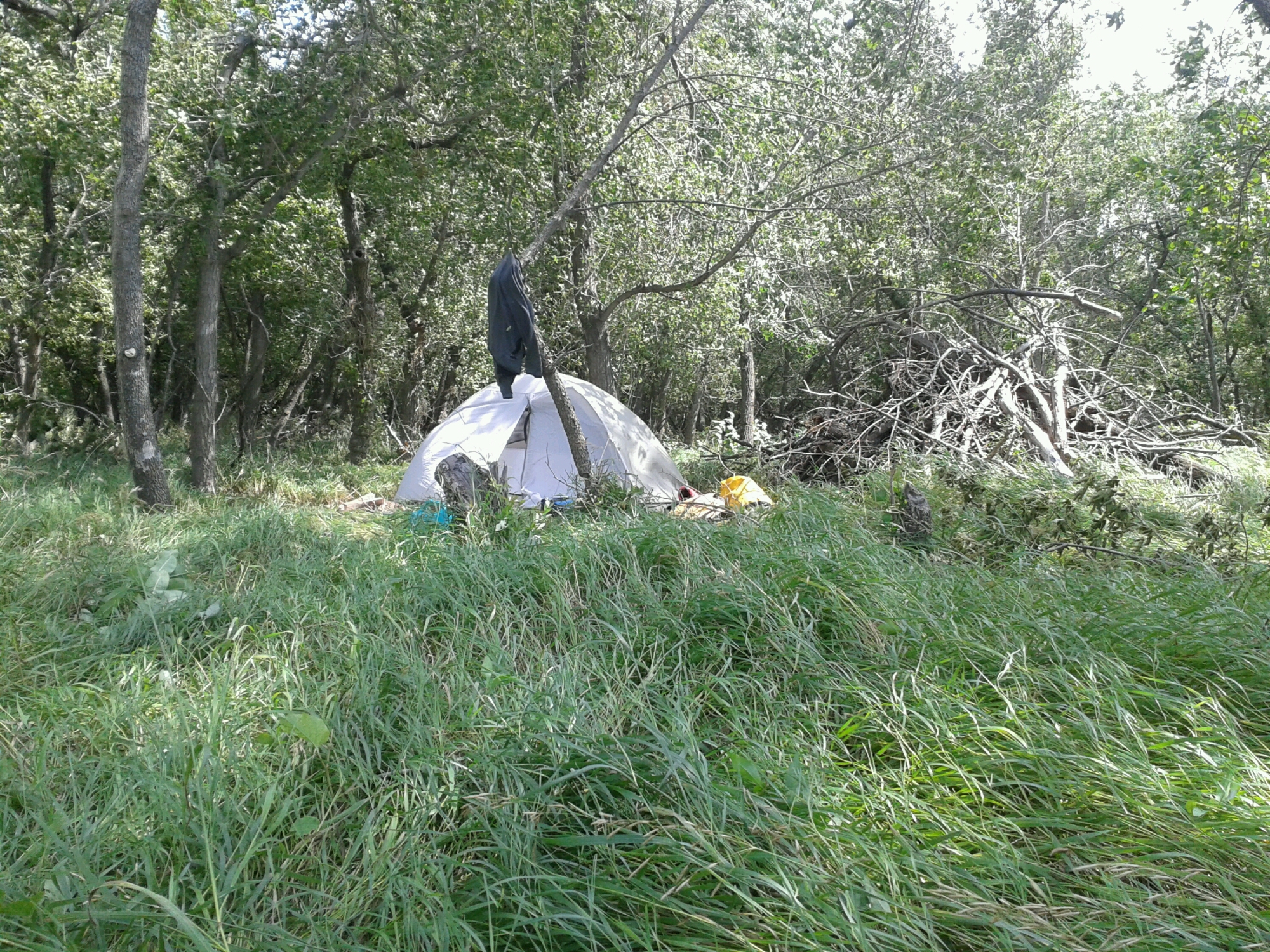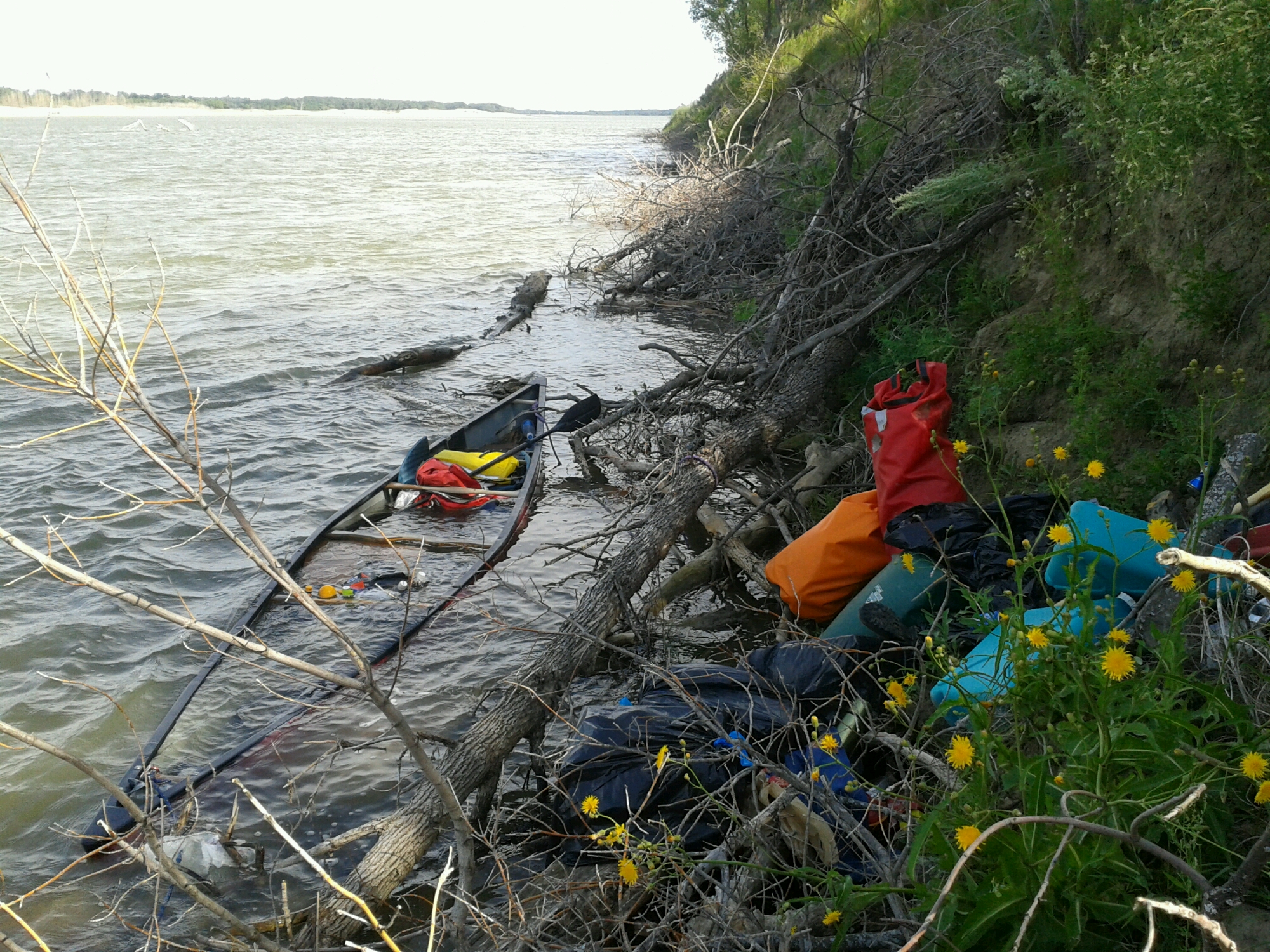 My heart almost sank with it. Lake Oahe is full of tricks. Stands of old trees, Logs, sandbars. This could get much worse, and I don’t carry the hi-powered lighting to navigate at night. A headlamp and a Solarpuff were switched on.